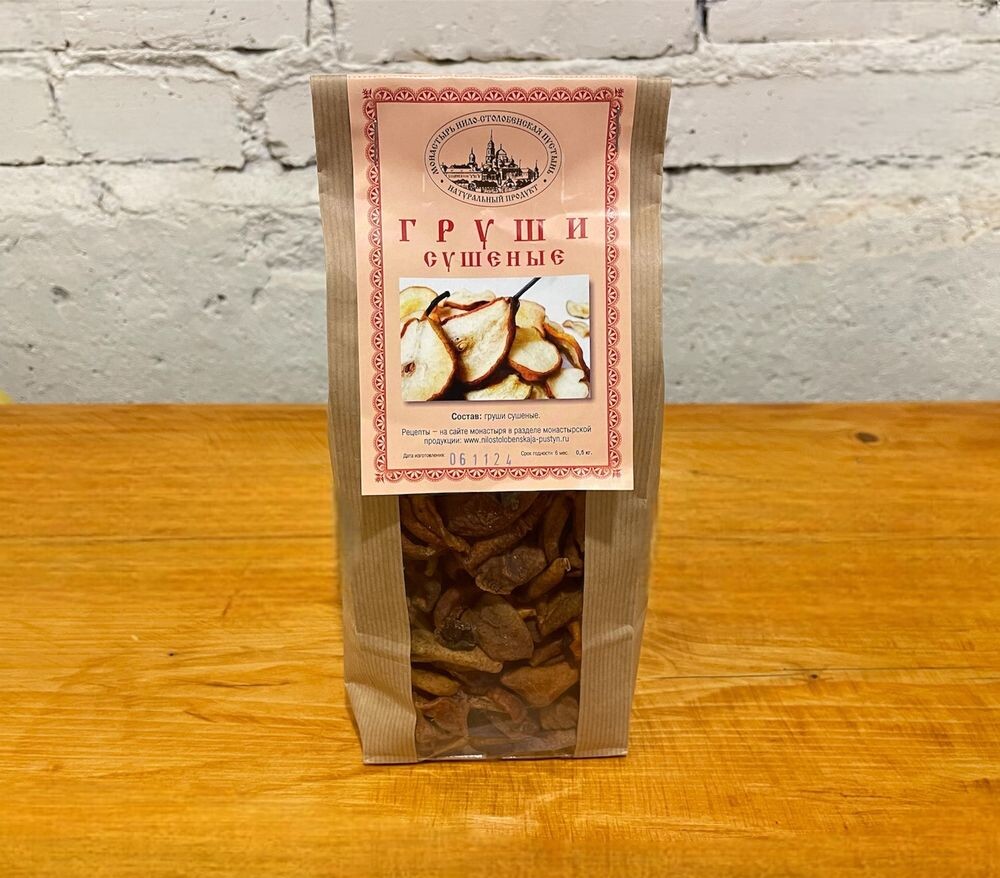 Произведено и выращено в мужском монастыре Нило-Столобенская пустынь Состав: плоды груши Можно варить компот, измельчить и добавлять в кашу, или использовать как полезный перекус.
