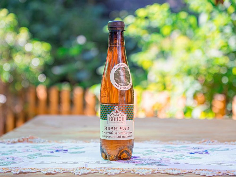Иван-чай с мятой и имбирем газированный лимонад. 0, 45 л. Производитель Троице-Сергиева Лавра.