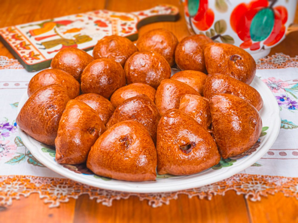 Сет состоит: 10 мини-пирожков с говядиной и 10 мини-пирожков с печенью.