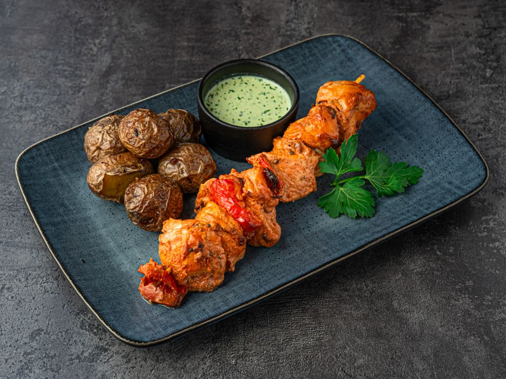 Шашлычок из курицы, с болгарским перчиком, подается с гарниром на выбор с доставкой