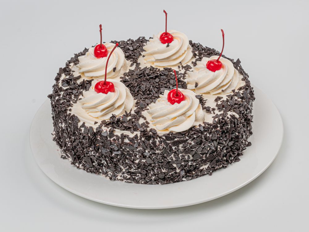 Декор: стружка из тёмного шоколада, вишня консервированная (коктейльная).