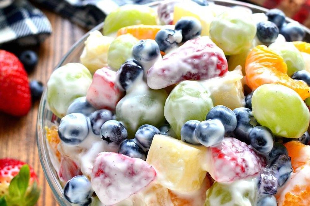 Фруктовый салат, заправленный монастырским йогуртом с доставкой