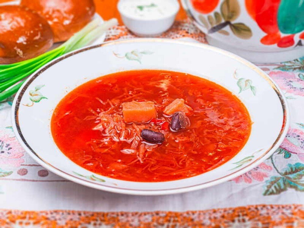 Борщ с телятиной и пампушками