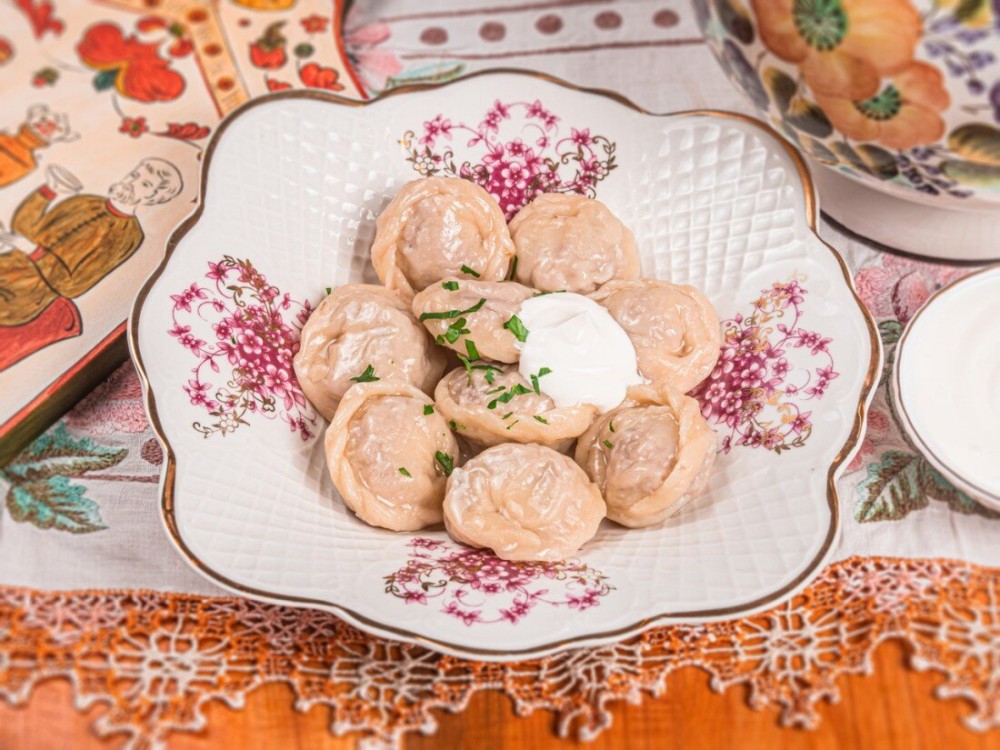 Пельмени куриные ручной лепки, подаются со сметаной с доставкой