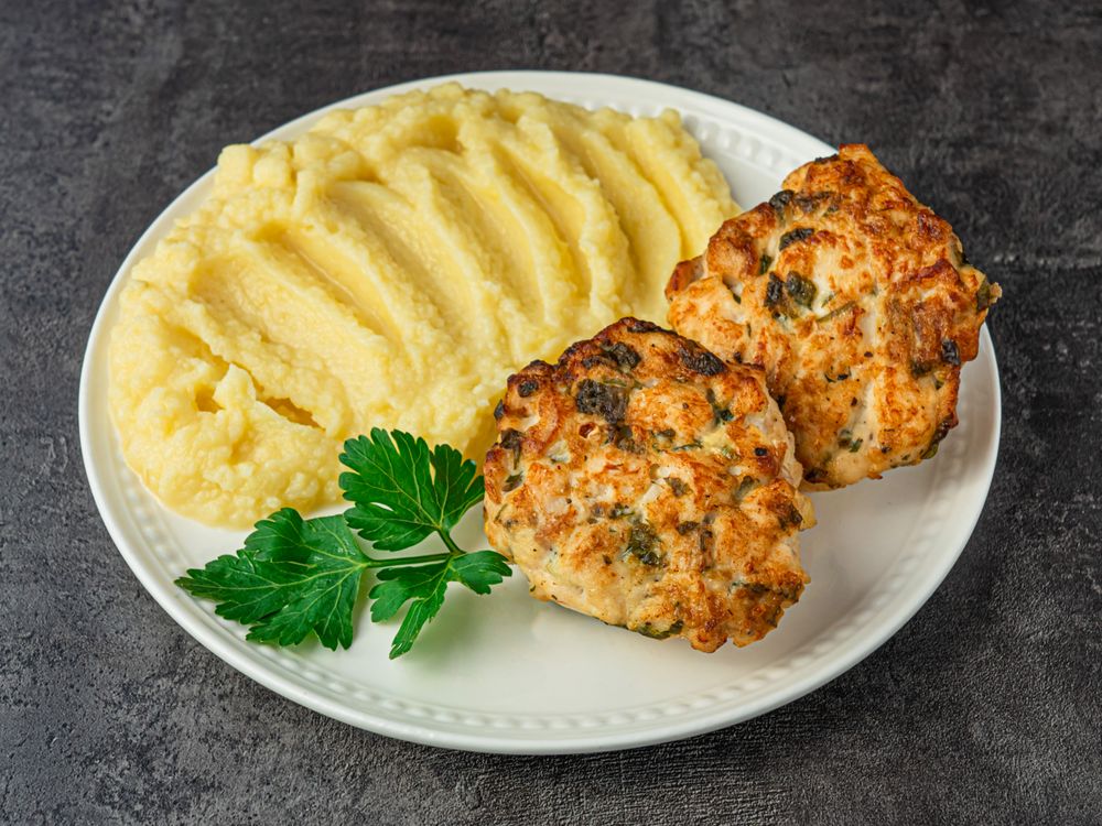 Рубленные куриные котлетки (2 шт), подаются с гарниром на выбор с доставкой