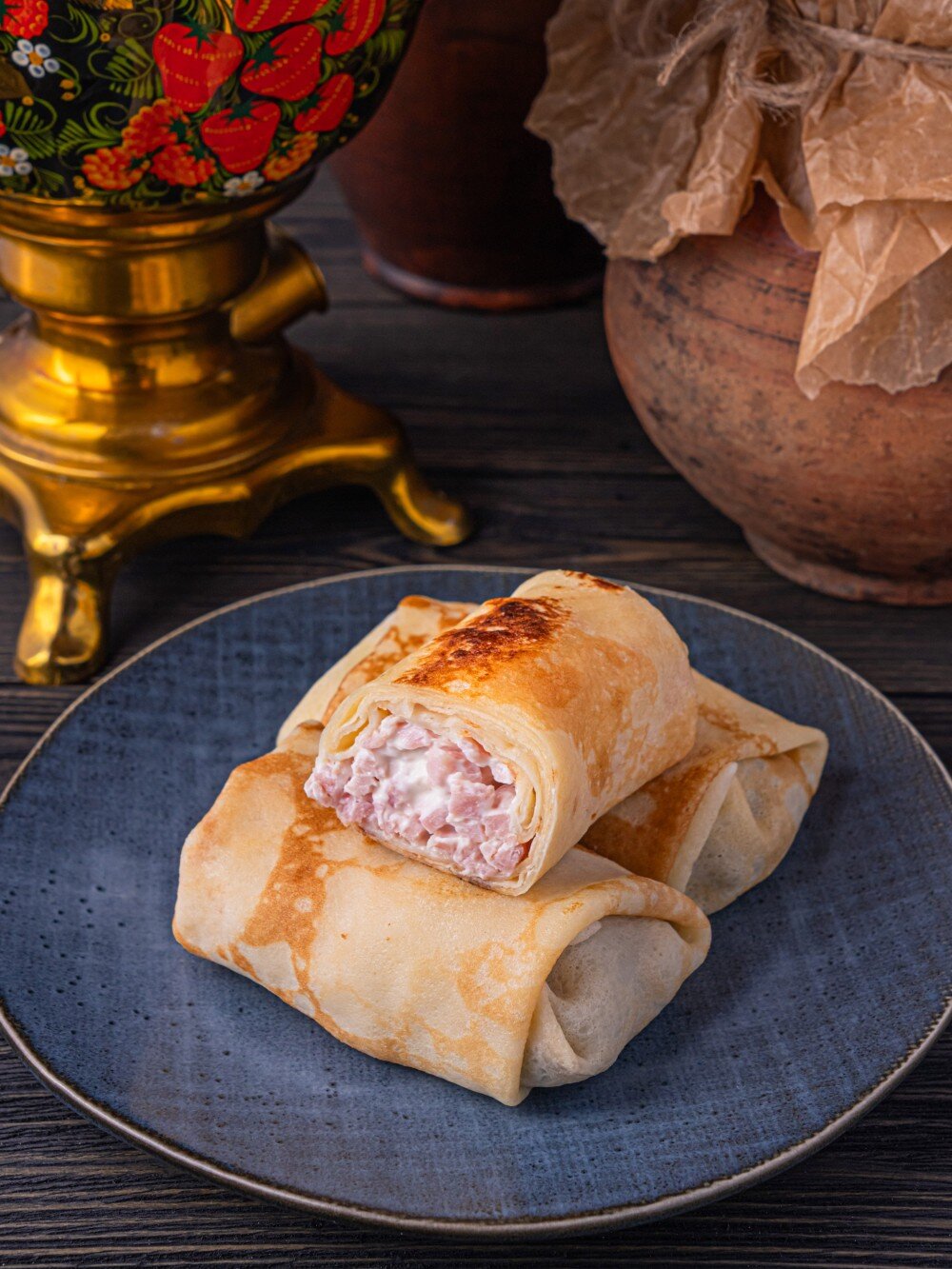 Блинчики с нежной ветчиной и монастырским сыром