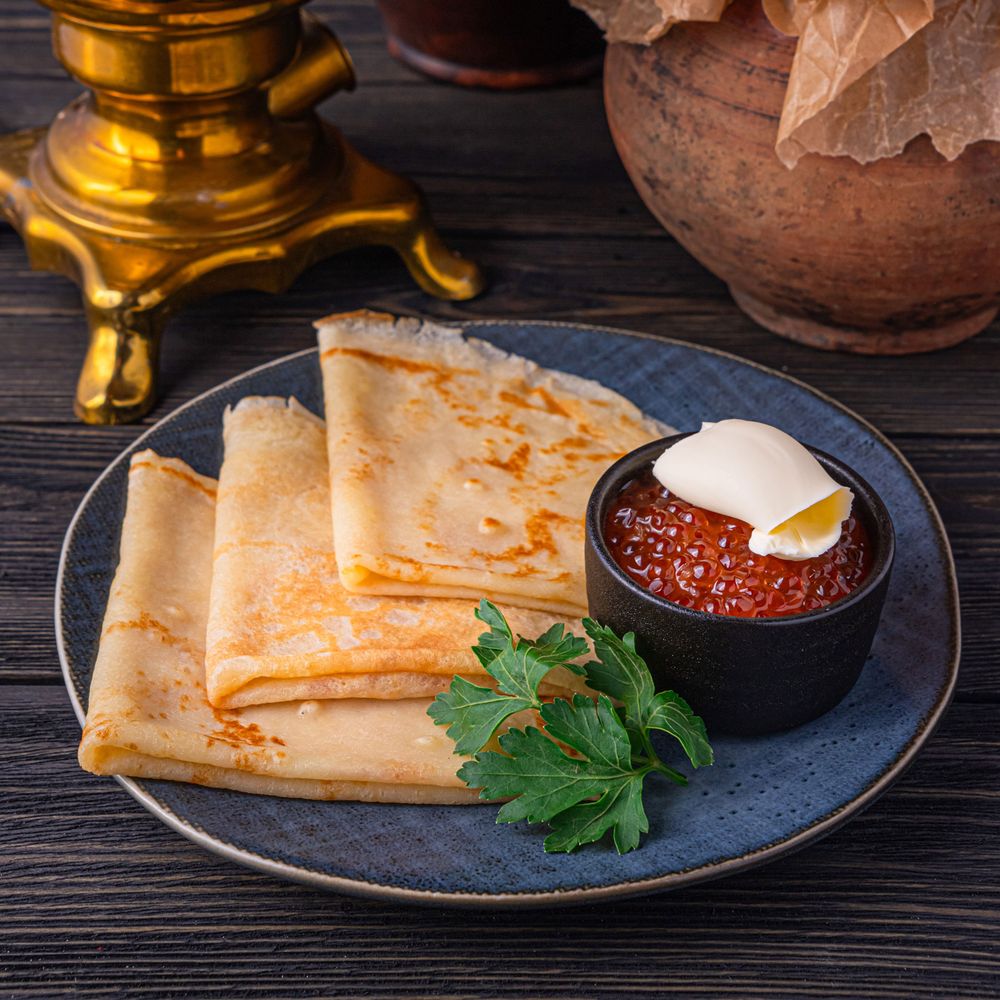 Блинчики с красной икоркой и сливочным маслом с доставкой