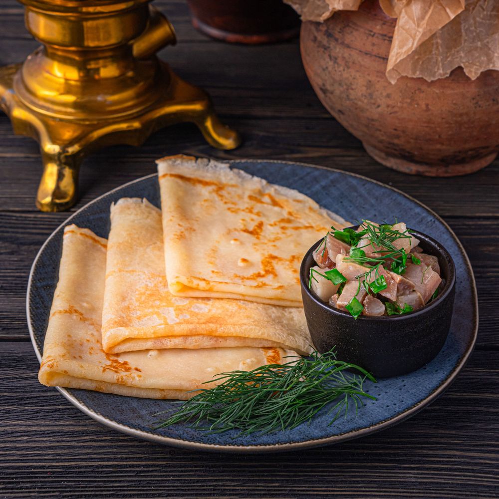 Блины с селедочкой пряного посола (солим сами) с доставкой