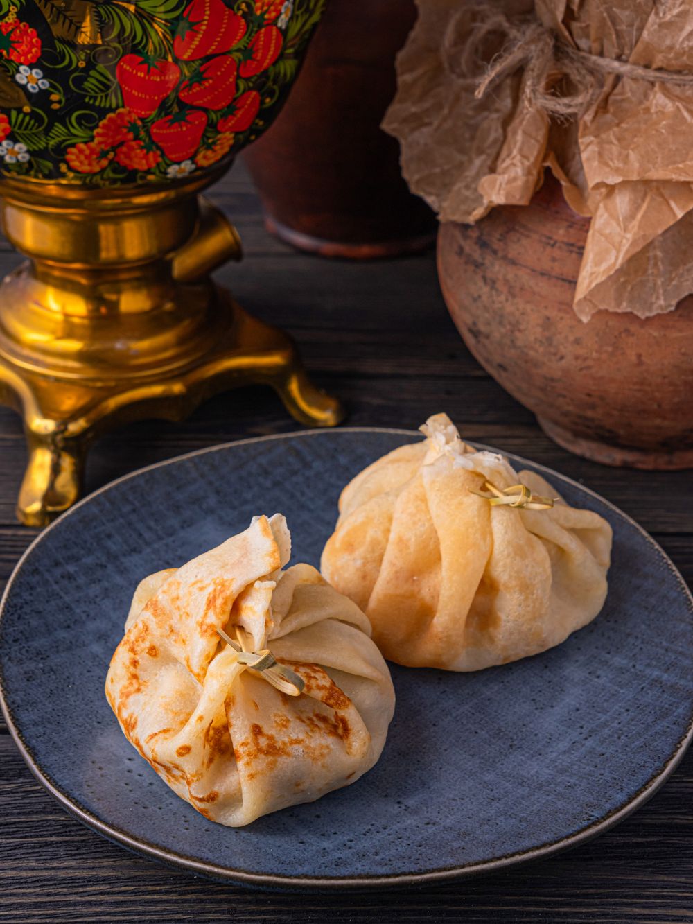 Блины-жюльен с грибочками и сыром подаются со сметаной