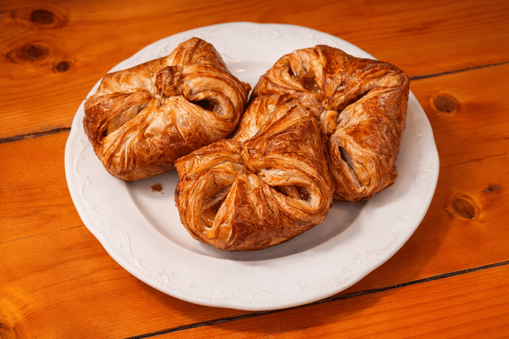 Нежные, румяные розанчики из хрустящего слоёного теста с ароматной начинкой из абрикосового джема. Лёгкие, воздушные слои теста гармонично сочетаются со сладкой, слегка кисловатой фруктовой начинкой, создавая насыщенный и в то же время утончённый вкус. Идеально подходят к чаю или кофе — для уютного завтрака или приятного десерта в течение дня.