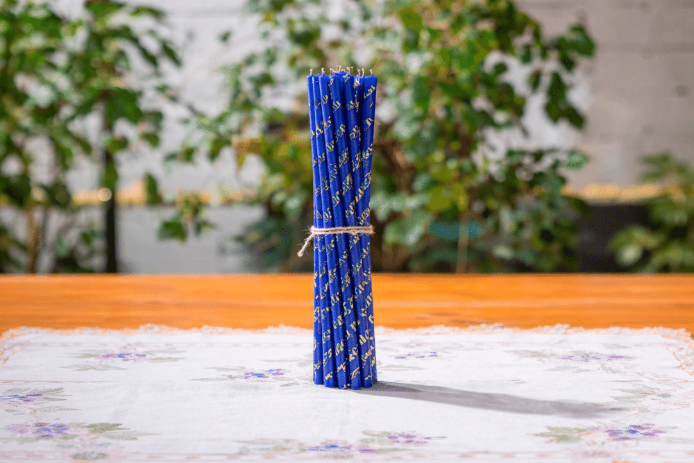 Свечи церковные восковые золоченные "Праздничные" синие Продаются комплектом 10 штук Время горения 2,5 часа Длина 27см Диаметр 10мм