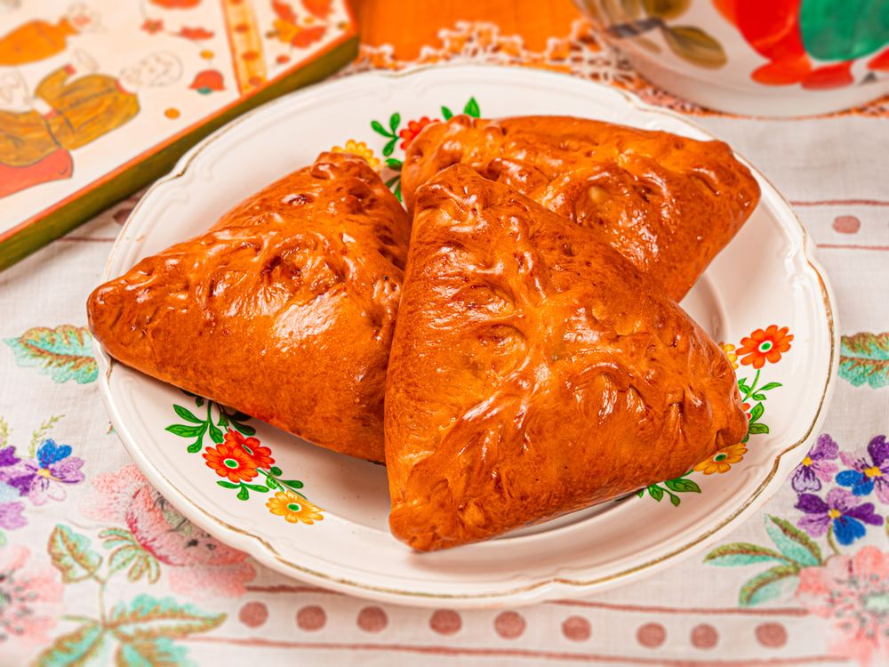 Пирожки треугольной формы из сдобного теста с сочной начинкой из картофеля, говядины и лука. Это вкусная, полезная и очень сытная выпечка.