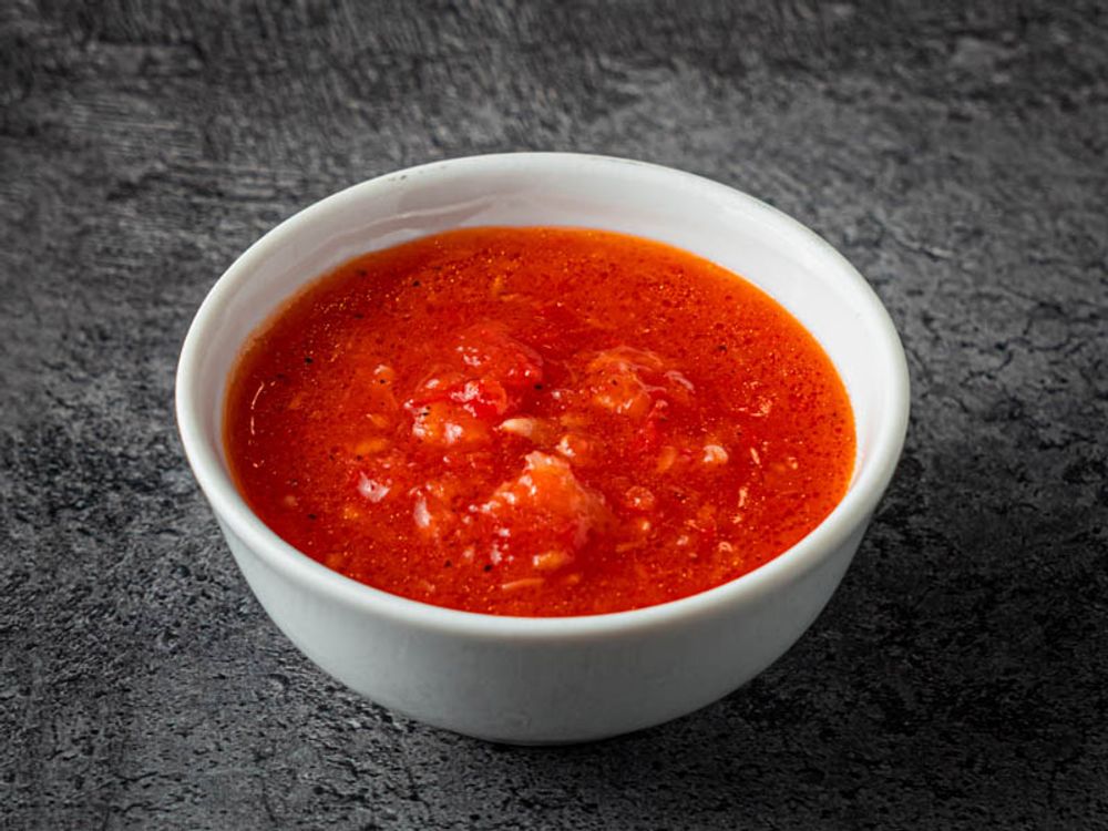 Состав: томаты, морковь, лук, зелень, перец черный, сахар, чеснок.