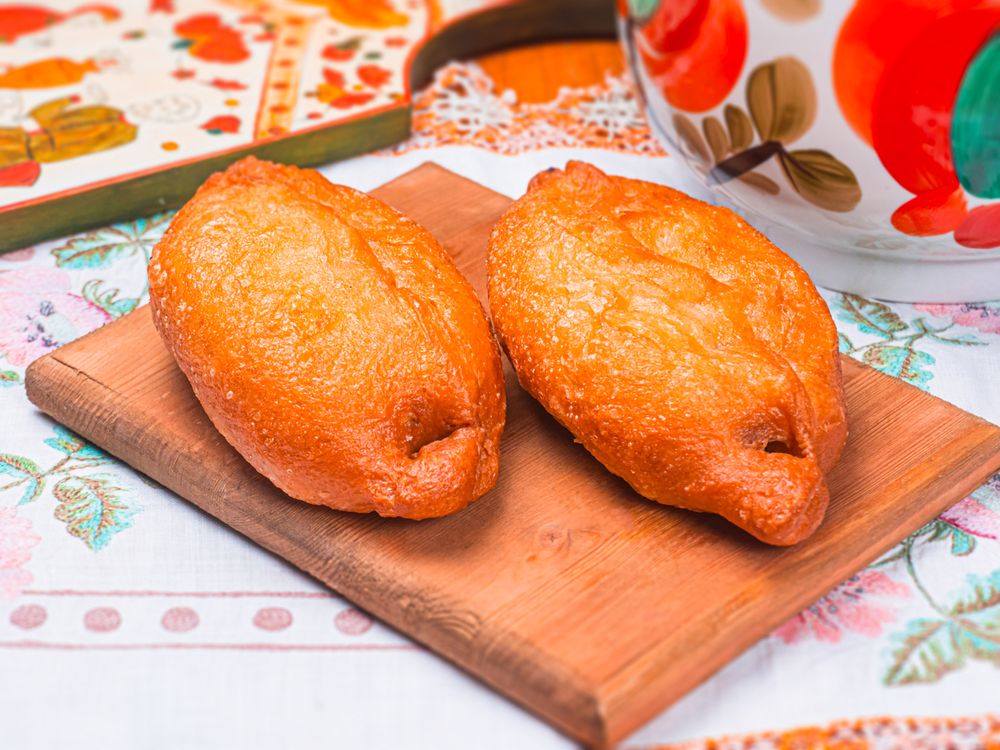 Жареный пирожок с яблочным повидлом