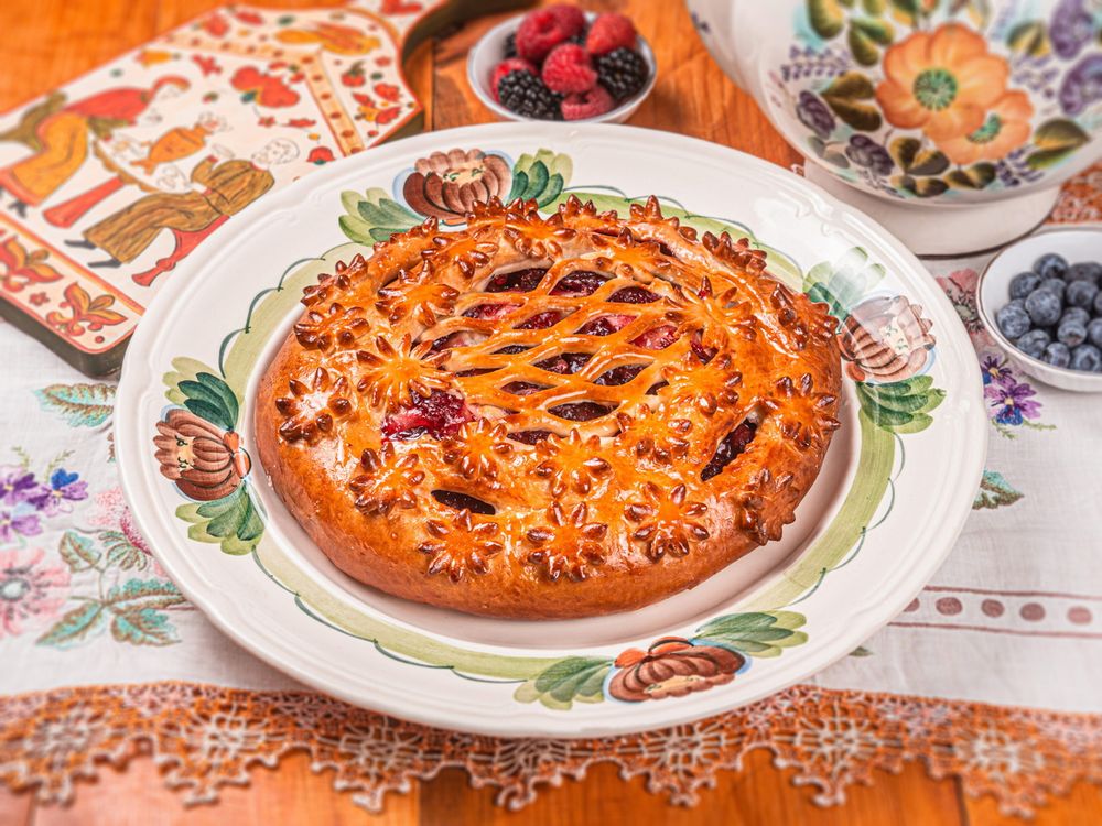 Черная смородина, брусника, вишня, черника, настоящая ягодная поляна в одном пироге. Мы используем только натуральные ягоды и продукты, поэтому тесто получается воздушным, а начинкой такой вкусной!