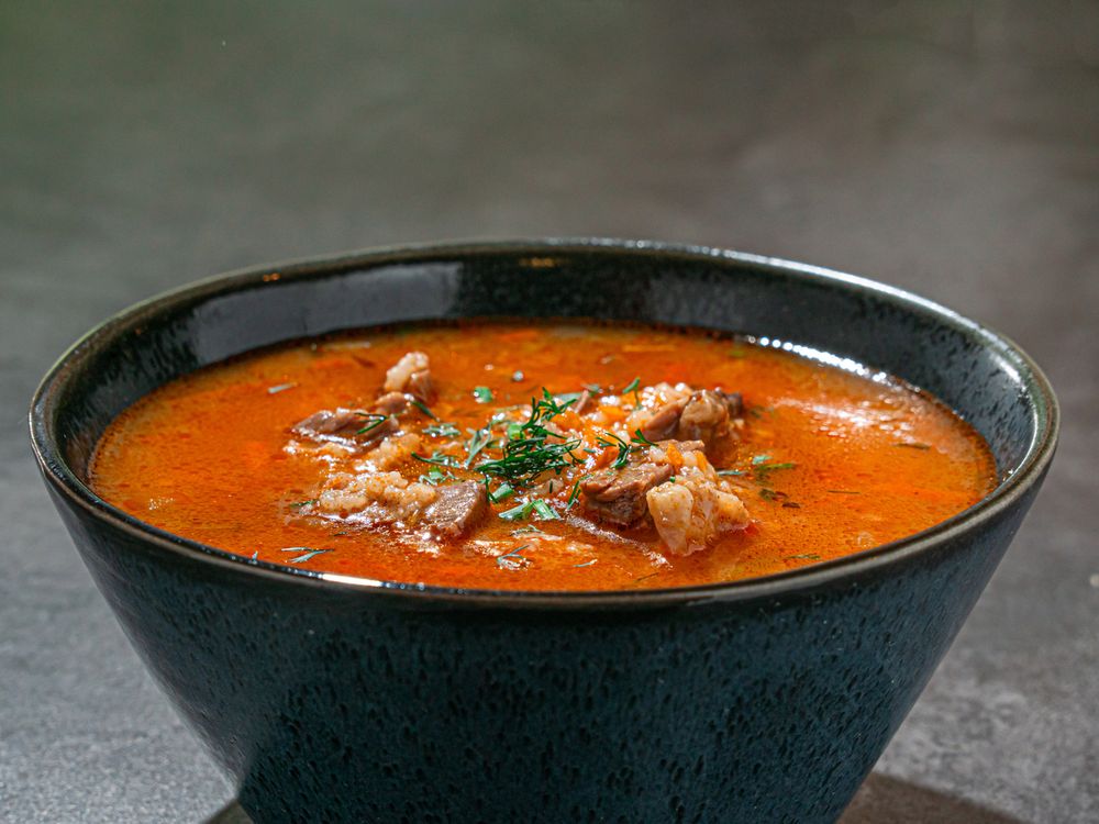 Классический рассольник с говядиной и солеными огурчиками, вкусный, ароматный и наваристый.