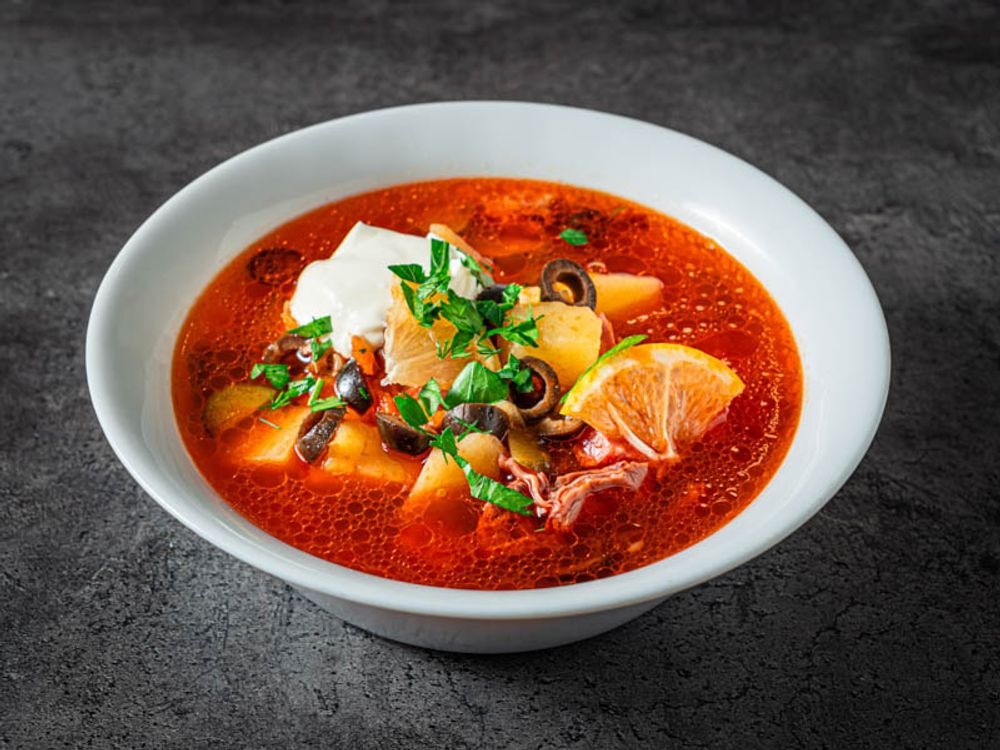 Суп-солянка с говядиной и огурчиком с доставкой