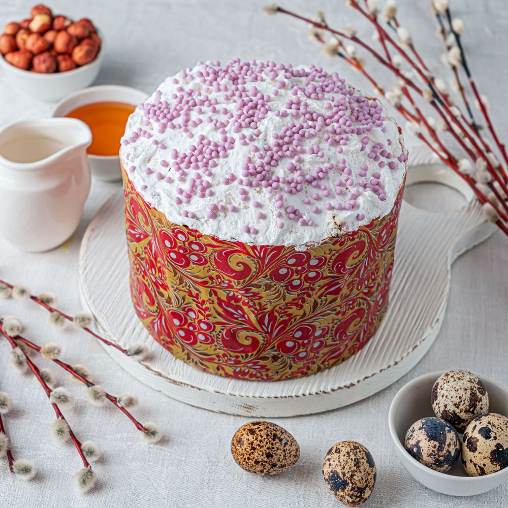 Кулич собственного производства. Любимый всеми рецепт, готовится на монастырском молоке, сливочном масле, с добавлением творога, изюма, цукатов и коньяка. Кулич получается ароматным, насыщенным по вкусу, долго хранится и не сохнет. Много лет мы производим и продаем именно эти куличи и, гости нас очень благодарят за них. Будем надеяться что они украсят ваш Праздник.