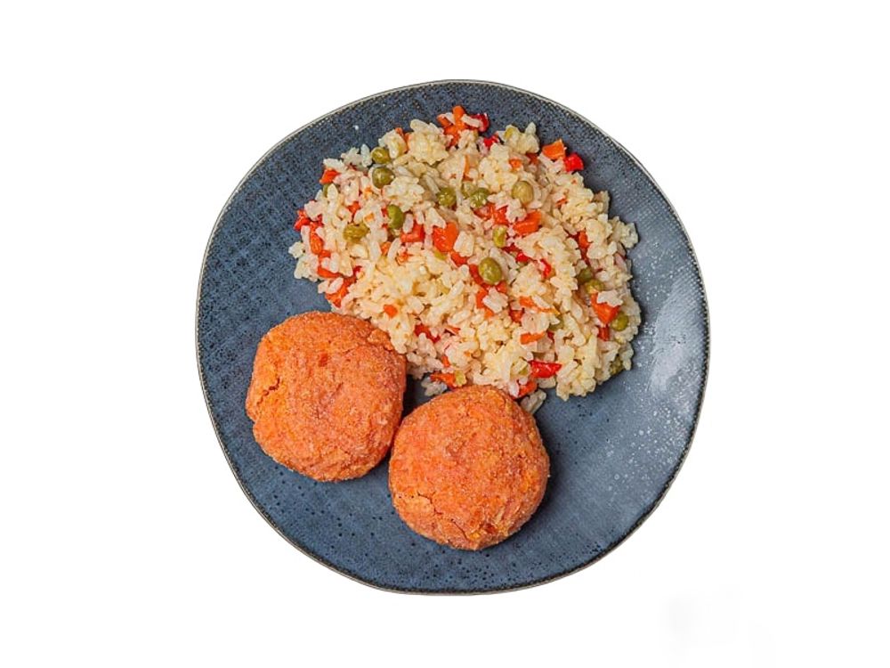 Морковные котлетки, гарнируются рисом или булгуром с обжаренными овощами с доставкой