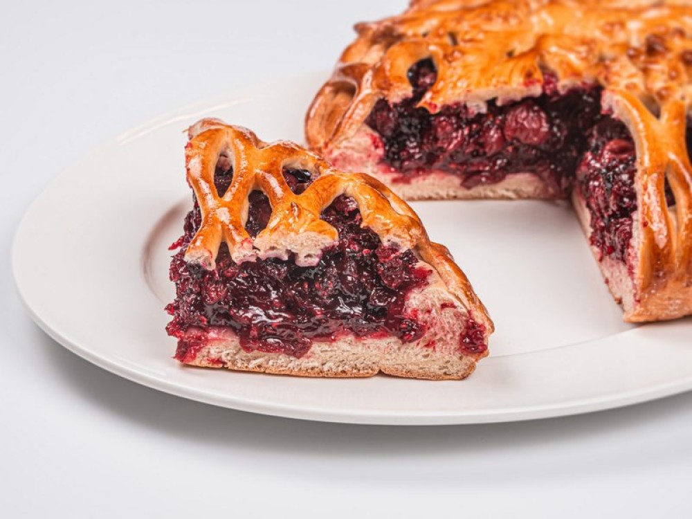 Черная смородина, брусника, вишня, черника, настоящая ягодная поляна в одном пироге. Мы используем только натуральные ягоды и продукты, поэтому тесто получается воздушным, а начинкой такой вкусной!