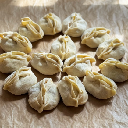 Пельмени ручной работы от шеф-повара. Тонкое постное тесто и сочная мясная начинка. Состав: говядина, свинина, репчатый лук, перец, соль, мука пшеничная в/сорт, яйцо, соль, вода.