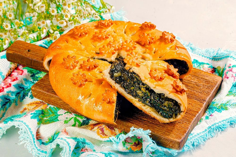 Необыкновенно сочный и румяный пирог со щавелем, начинка в меру сладкая, со слегка кисловатым вкусом с добавлением сахара. Сочный, необычный пирог к вашему столу.