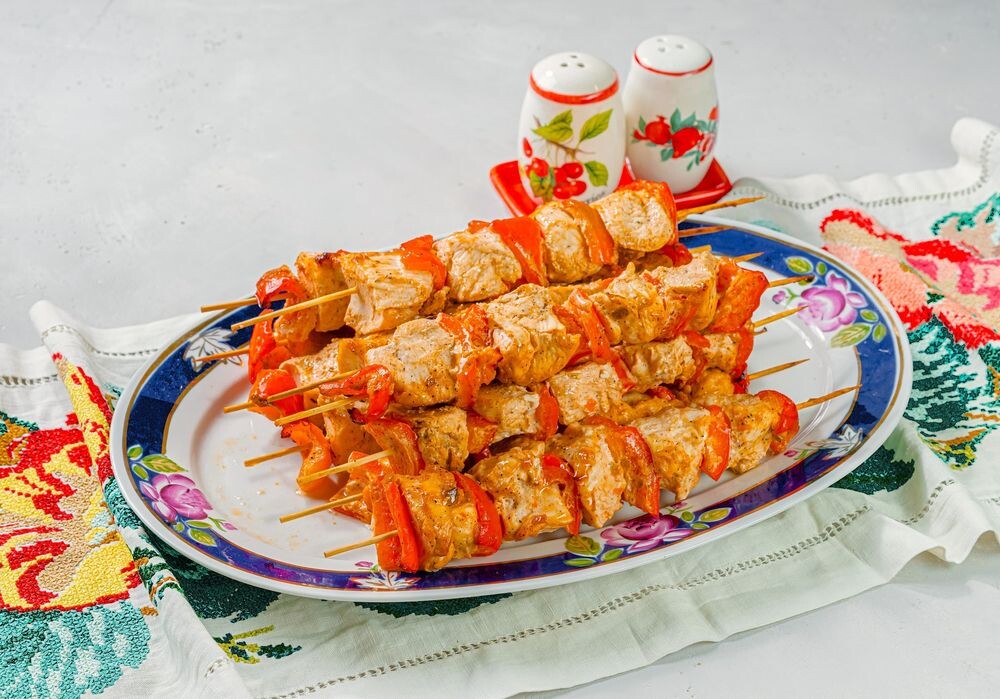 Нежное филе курицы предварительно маринуется в кефире и запекается вместе с дольками болгарского перца. Изумительно мягкое, сочное и нежное мясо. В комплекте 10 шашлычков, можно дополнительно заказать любой гарнир на выбор.