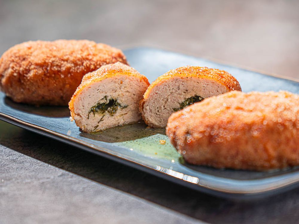 Сочные котлеты из куриного филе, в состав так же входит сливочное масло, лук, зелень, пшеничный хлеб, сливки, яйцо, соль, перец. Подаются по 3 штуки. Полностью готовые к употреблению.