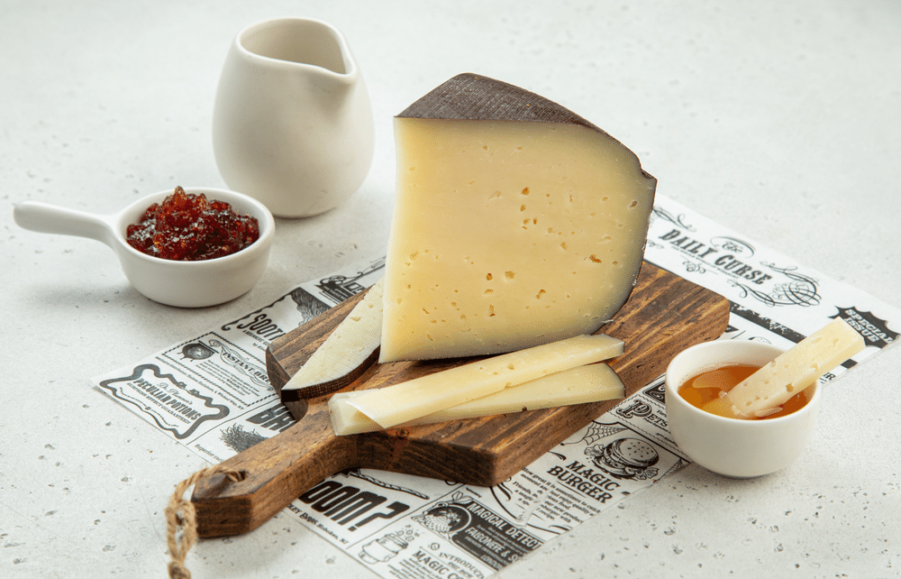 Сыр «Махрищский» из пастеризованного коровьего молока, очень твердый, жирность 49%.