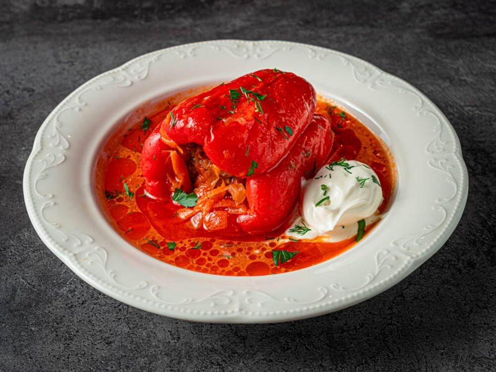 Перец фаршированный мясом, подаётся со сметаной с доставкой